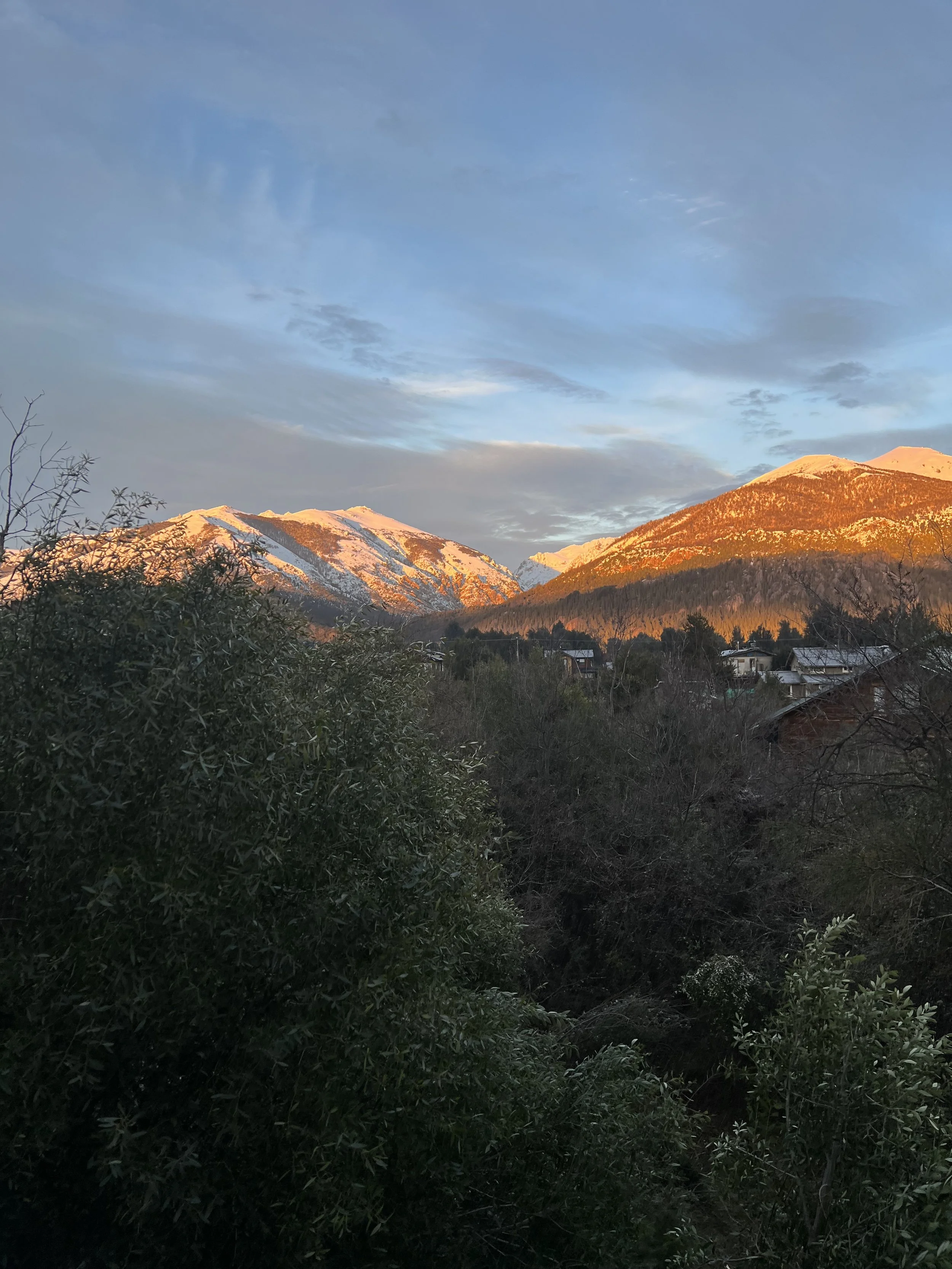 Bariloche felt like stepping into a dream. I stayed with a friend’s cousin in a humble wooden house hidden deep in the trees, down a winding path far from the main roads. Inside, everything was natural, simple, and cozy, with a layout that felt charmingly unique. The loft where I slept was a tiny platform you climbed to via a rock wall, with a small square window opening out to the mountains and stars—it was magical, like a secret hideaway in the woods.