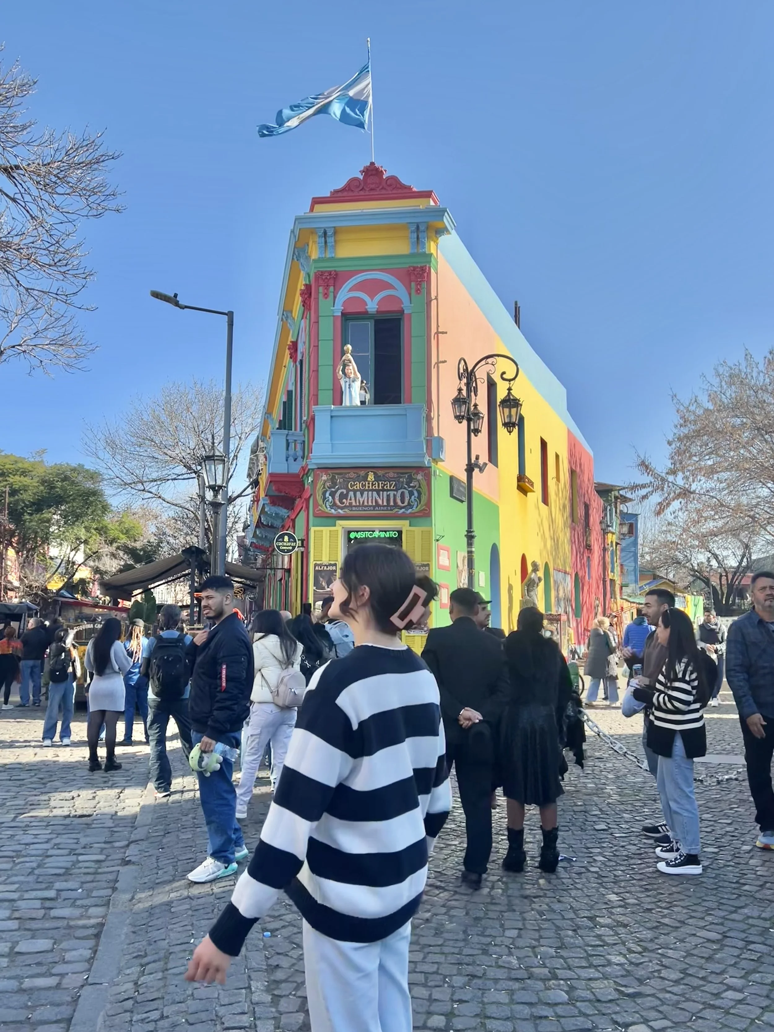 La Boca, colorful and full of murals, shops, and street vendors