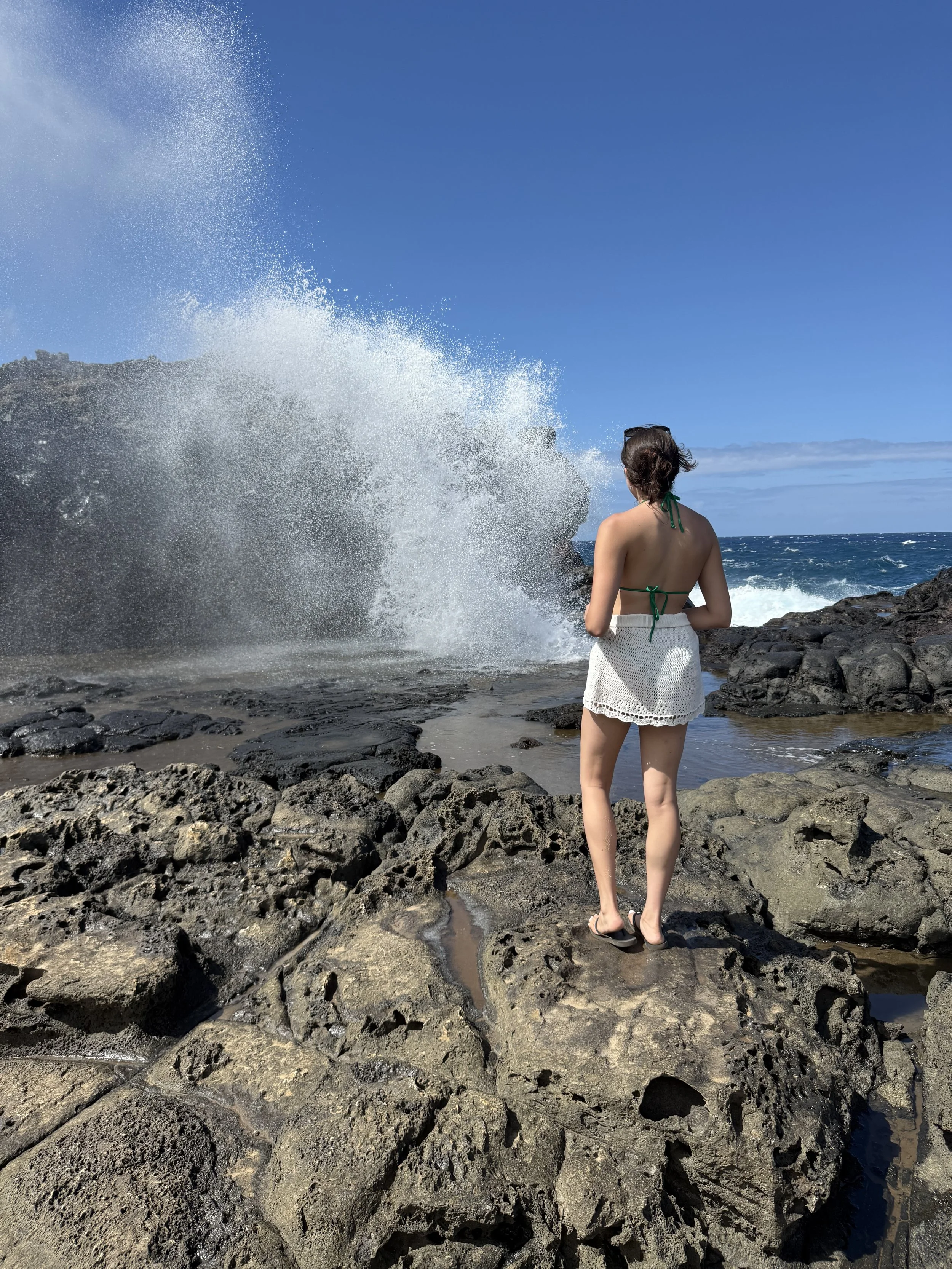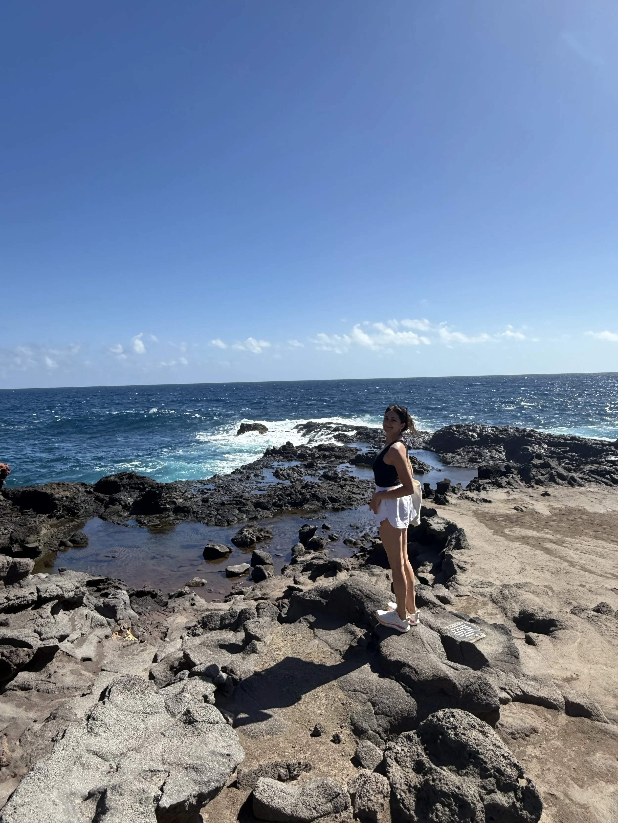 Olivine Pools: Extremely dangerous — people have died here. We hiked about halfway down for incredible cliff views but did not go near the pools as waves were crashing hard into them. Admire from a distance.