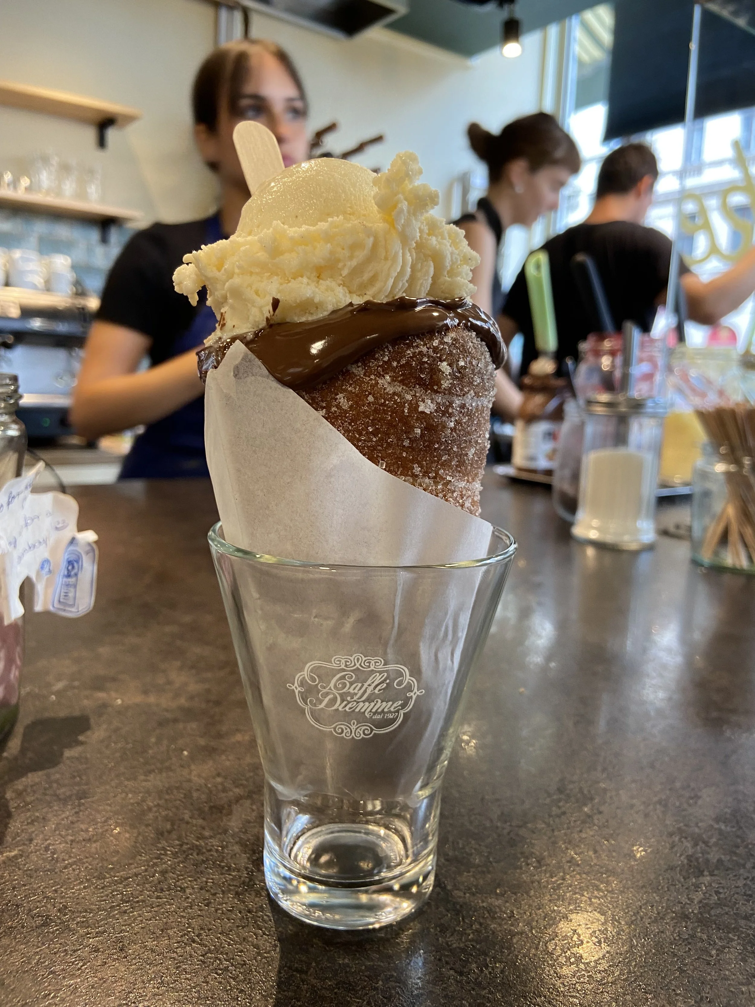 Sweet, spiral‑shaped pastry cooked over an open flame, rolled in sugar, and often finished with cinnamon or nuts. I loved adding nutella to mine! Grab one fresh and warm while walking — it’s part dessert, part experience.